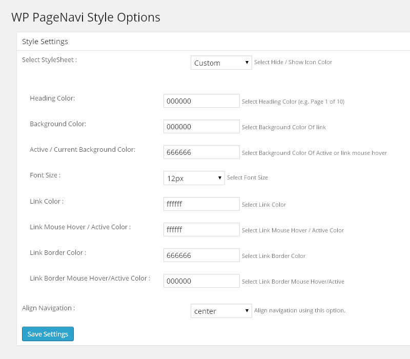 ▼ WP PageNavi Style Options – Custom